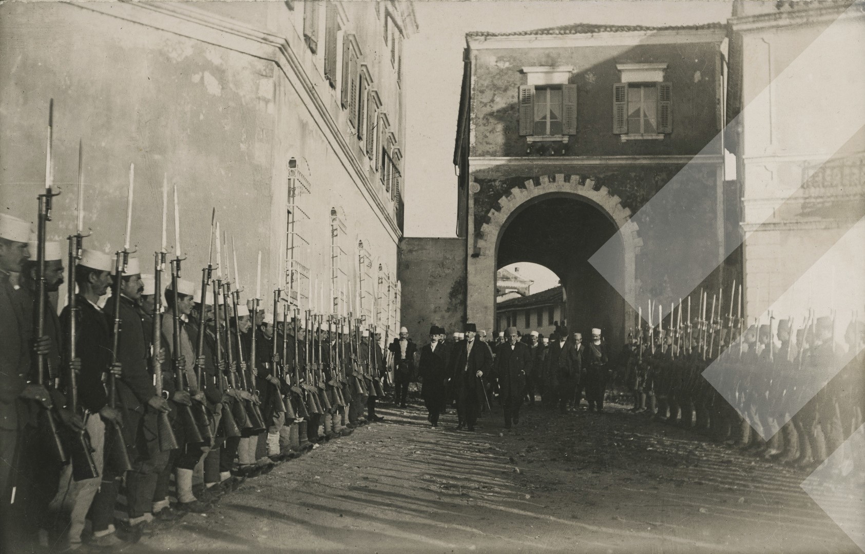 I panjohur, 1914, Hyrja e Esadë Pashë Toptanit në Durrës në Shtator 1914, print në letër, 9 x 14 cm.