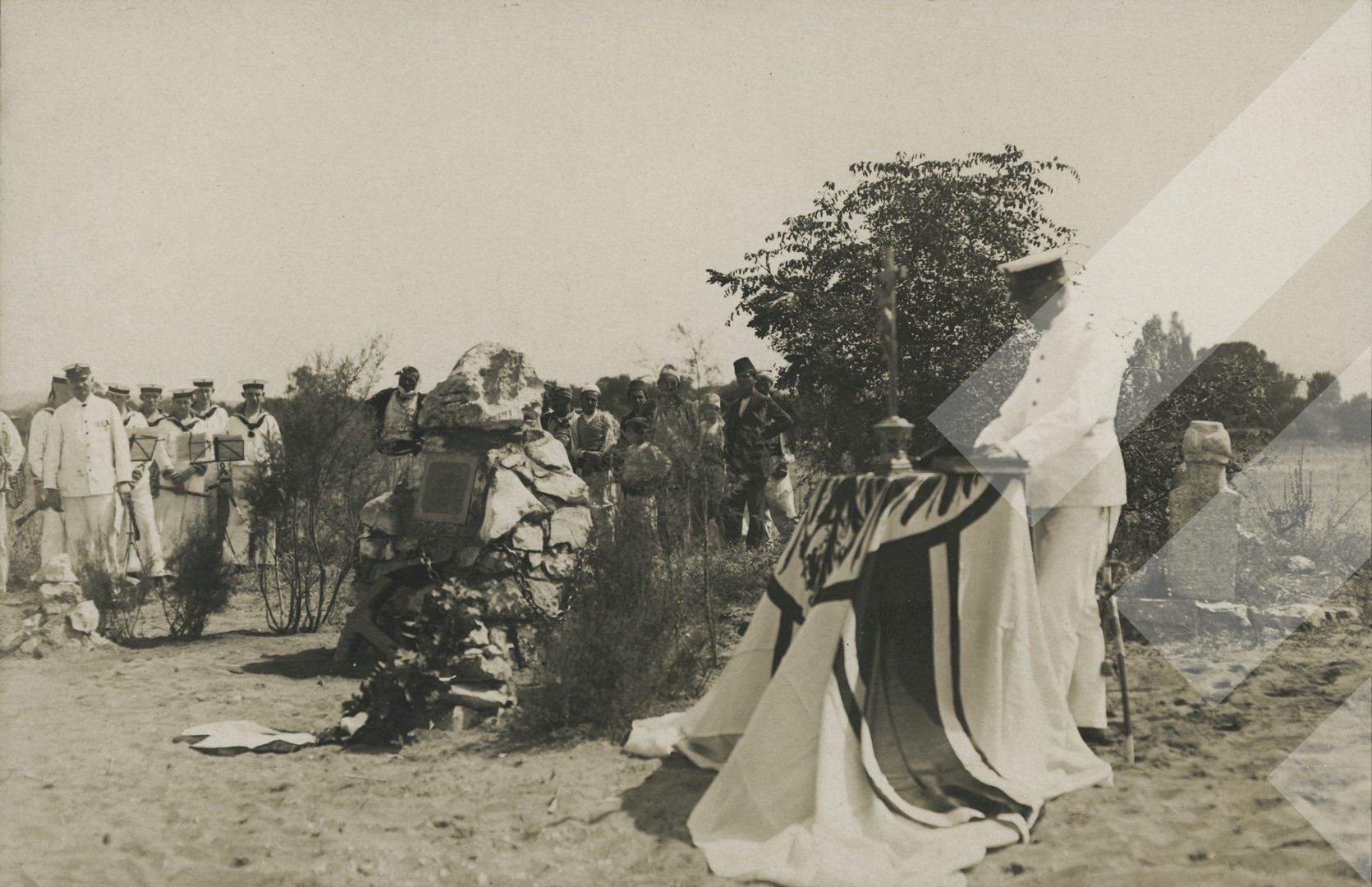 I panjohur 1913, Meshë për trupat e marinës gjermane në grykderdhjen e Bunës, Shkodër 14 Maj 1913, Print në letër, 9 x 14 cm.
