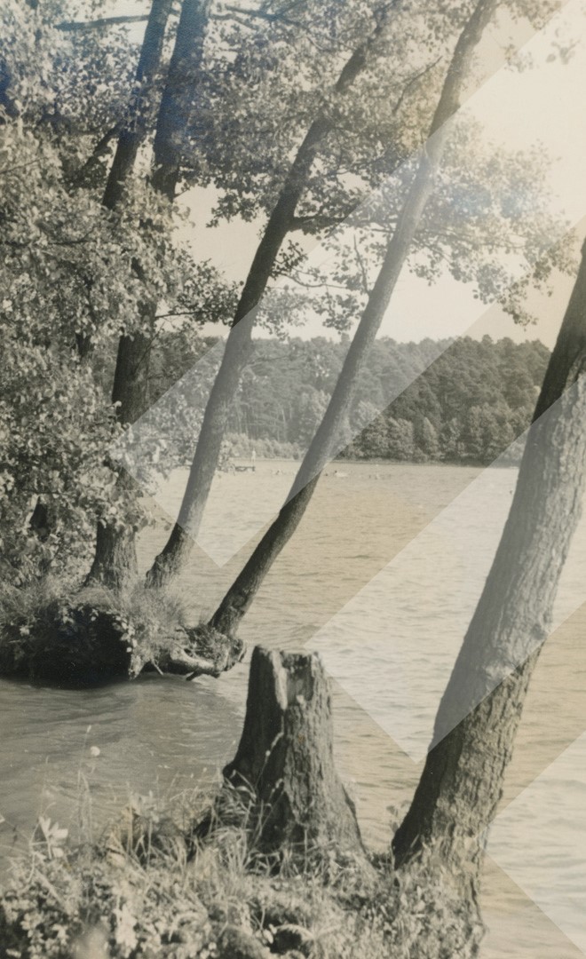 I panjohur 1961 Pamje nga liqeni i Werbellinsee në Altenhof print në letër, 9 x 13 cm.