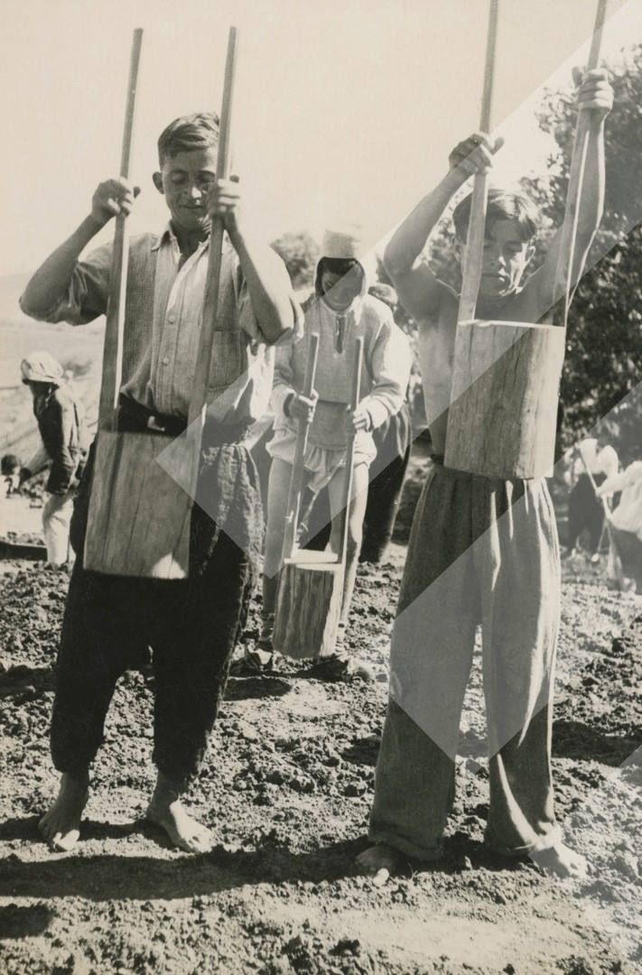 I panjohur, 1947, Aksionistë gjatë punës, print në letër, 7 x 11 cm.