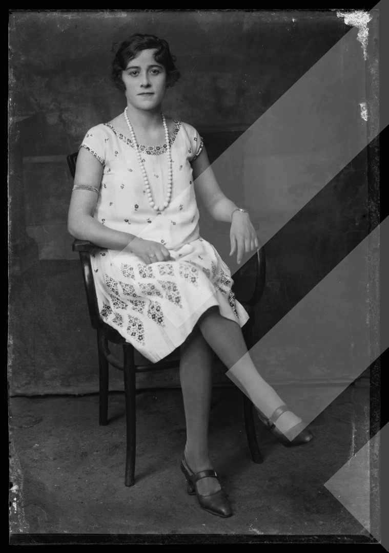 Petro Dhimitri, rreth 1920-1925, Thea, e bija e fotografit, pllaka xhami, 9 x 13 cm.