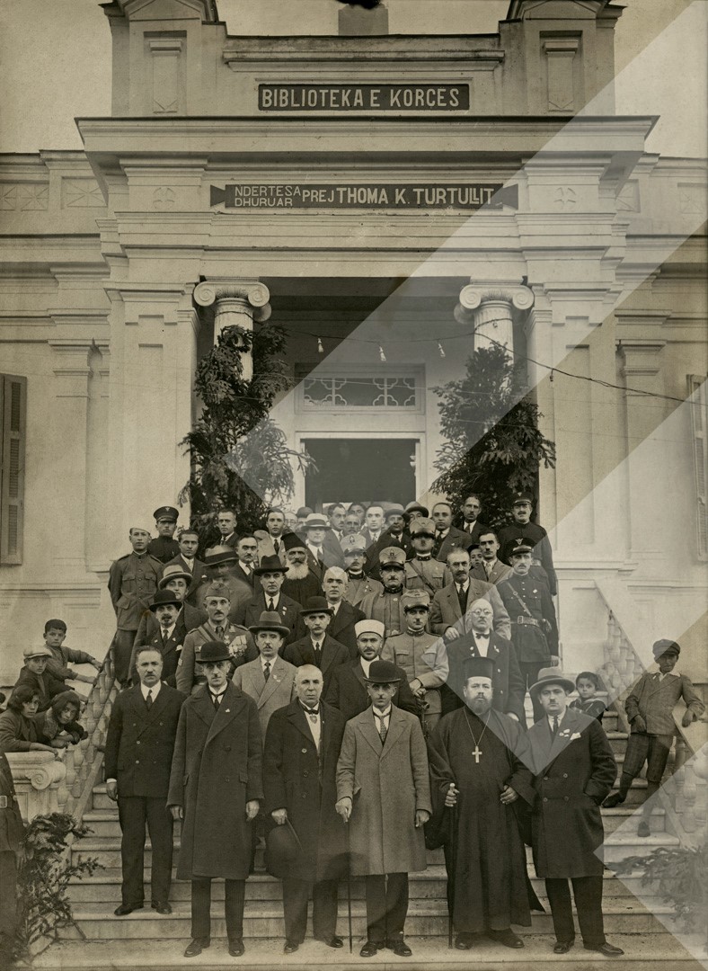 Petro Dhimitri, 1930, Inagurimi i bibliotekës "Thoma Turtulli", Korçë, print në letër, 30 x 36 cm.