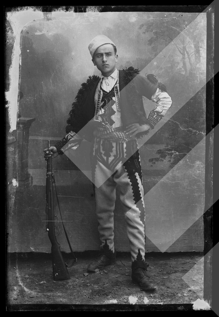 Petro Dhimitri, rreth 1913-1915, I ri malësor me armë, pllakë xhami, 9 x 13 cm.