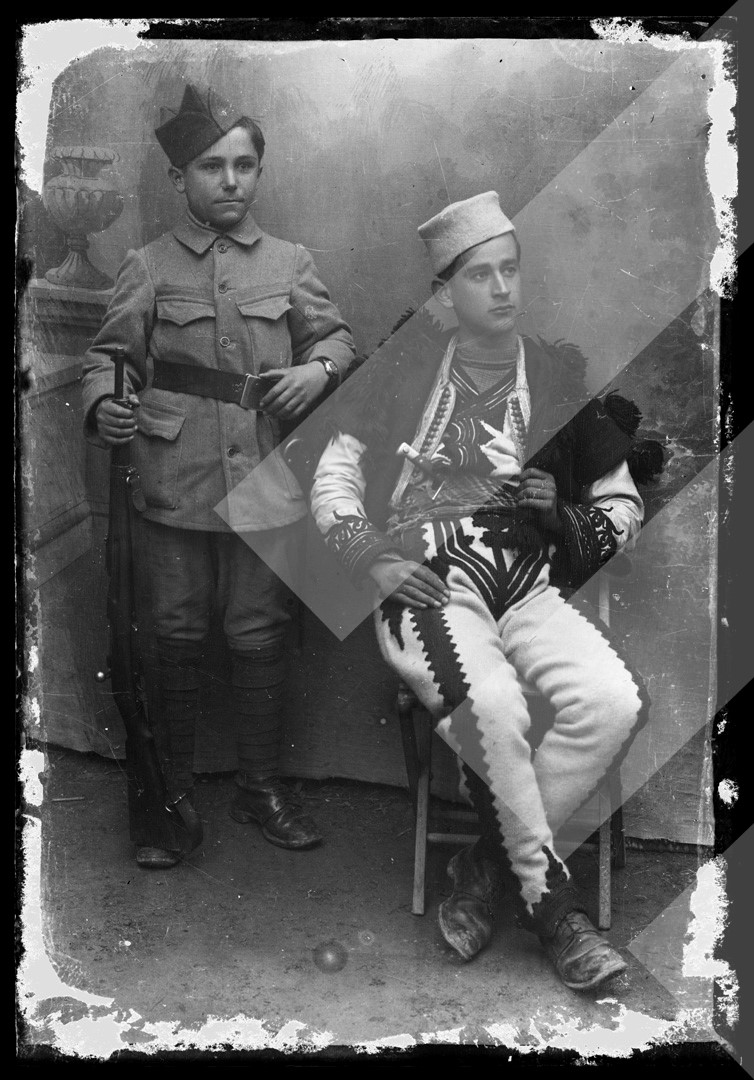 Petro Dhimitri, rreth 1912-1913, Djem ne pozë me armë, pllakë xhami, 9 x 13 cm.