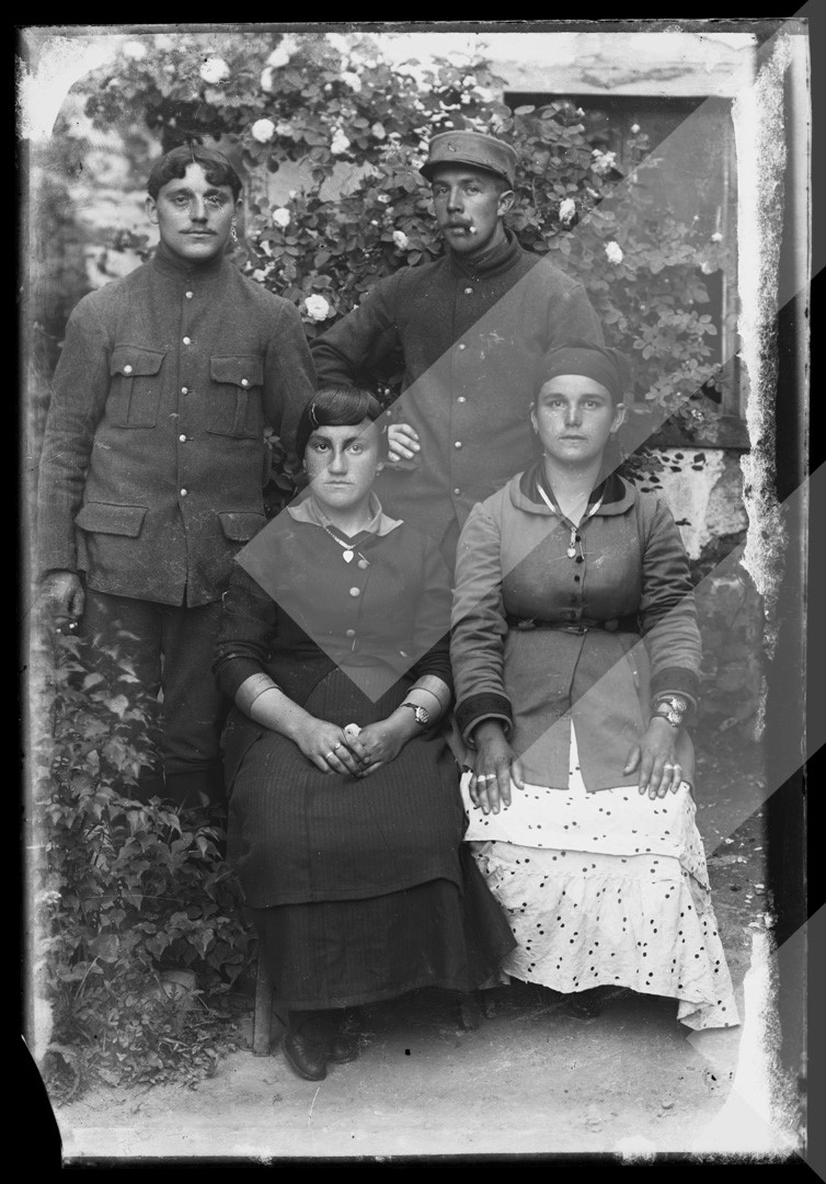 Petro Dhimitri, rreth 1917-1918 Ushtarë të Armatës Franceze të Orientit me bashkëshortet e tyre vendase, pllakë xhami, 9 x 13 cm.