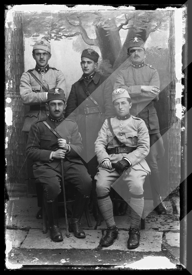 Petro Dhimitri, rreth 1920-1921, Ushtarakë shqiptarë në grup, pllakë xhami, 9 x 13 cm.