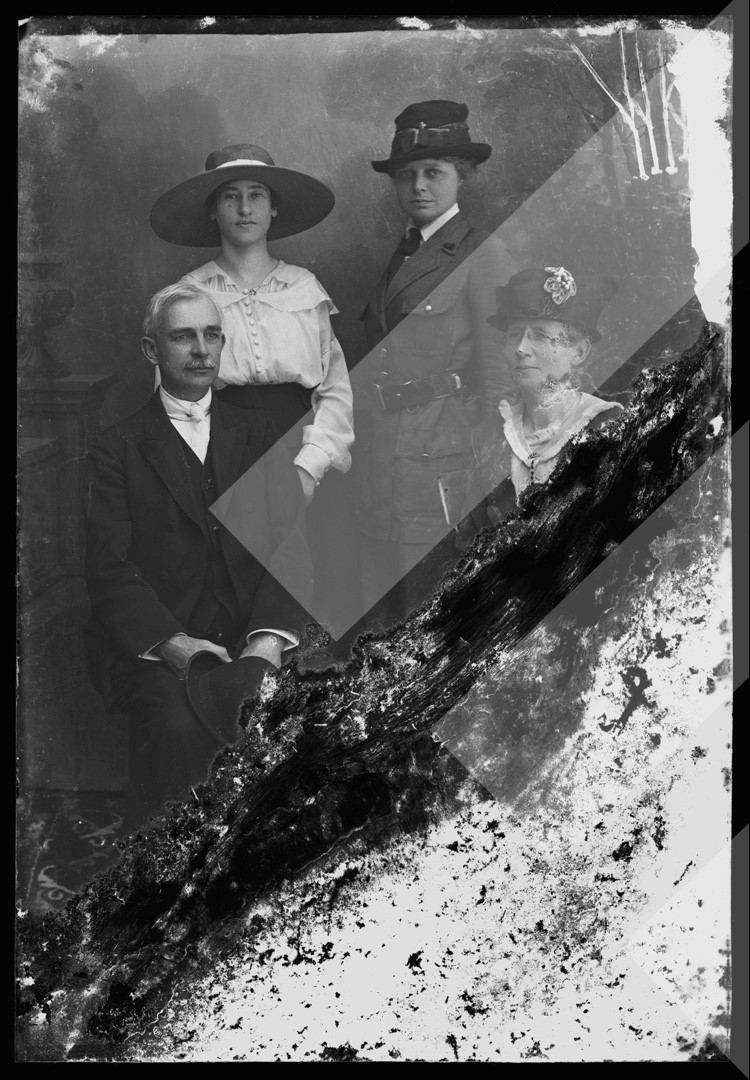 Petro Dhimitri, rreth 1920, Reverendi Phineas Barbour Kennedy me të shoqen Violet R.Bond dhe dy misionare amerikane (në këmbë), pllakë xhami, 9 x 13 cm.