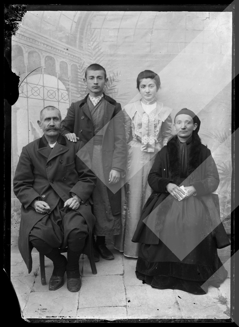 Petro Dhimitri, rreth 1895-1900, Foto familjare, Korçë, pllakë xhami, 13 x 18 cm.