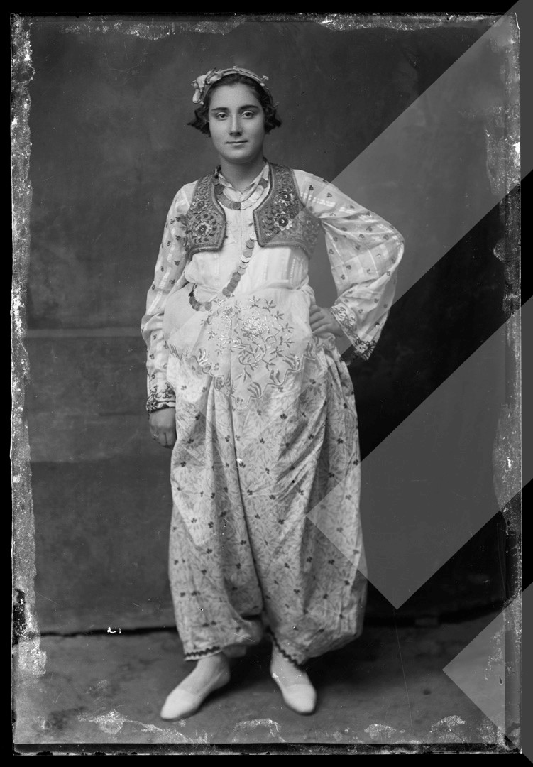 Petro Dhimitri, rreth 1920-1925, Vajzë muslimane Korçare, pllakë xhami, 9 x 13 cm.