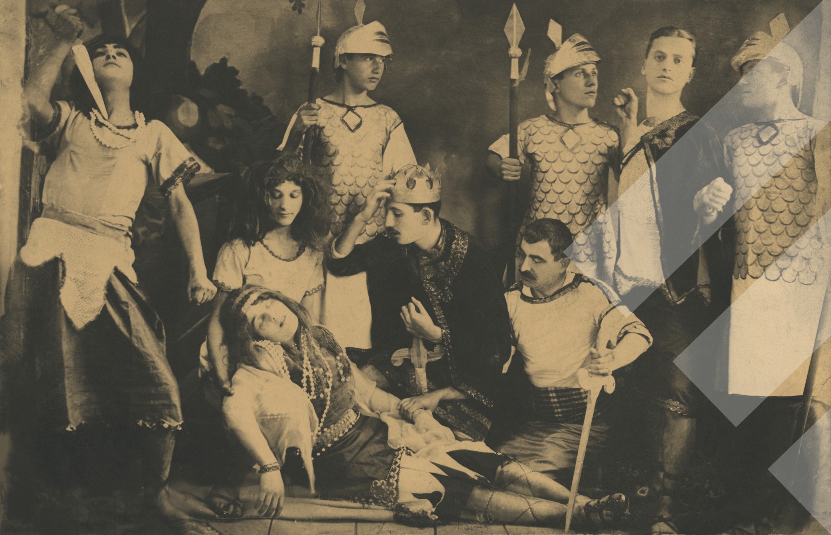 Kol Maca rreth 1920-1922 Shfaqe teatrale e shoqërisë "Vllaznija", Shkodër print në letër, 9 x 14 cm.