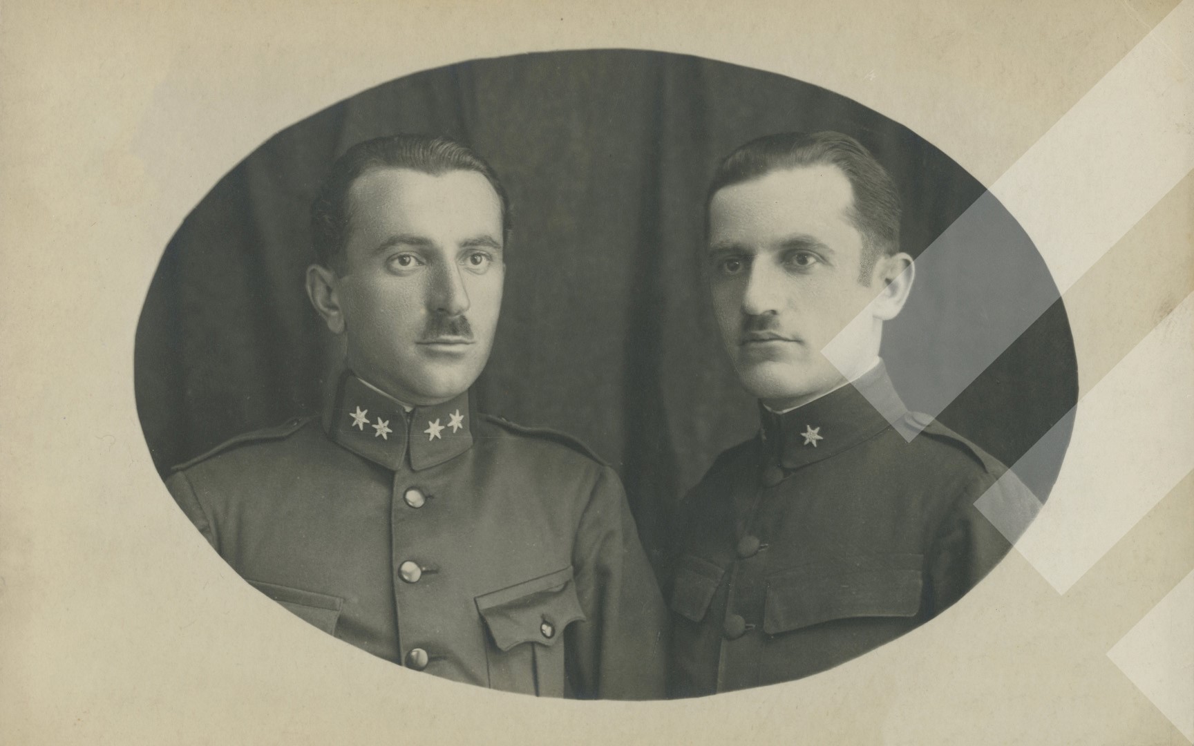 Kol Maca 1922 Oficerë shqiptarë në studio print në letër, 9 x 14 cm.