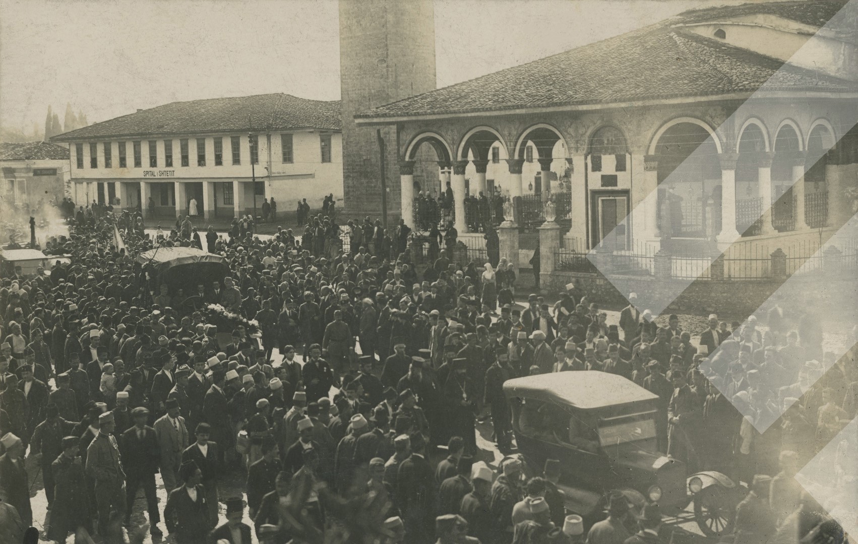 Kol Maca 1924 Ceremonia e varrimit të Avni Rustemit, Tiranë 28 prill 1924. Trupi i tij përcillet drejt Durrësit print në letër, 9 x 14 cm.