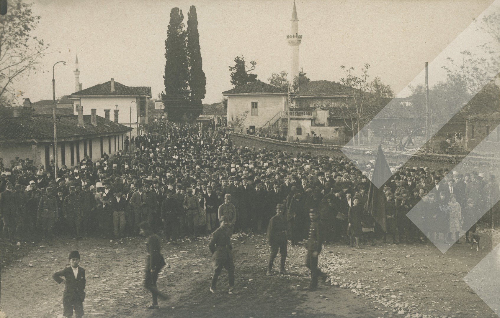 Kol Maca 1924 Miting në Tiranë me rastin e mbledhjes së Asamblesë Kushtetuese print në letër, 9 x 14 cm.