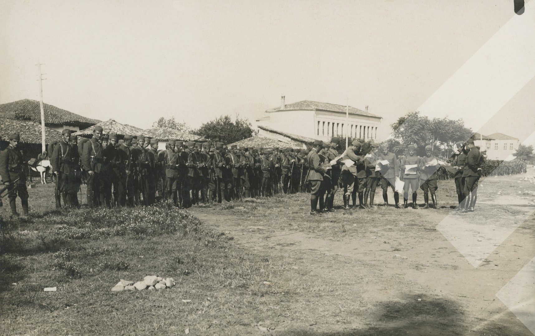 Kol Maca rreth 1921-1925 Ushtria Shqiptare në një fushë të Tiranës print në letër, 9 x 14 cm.