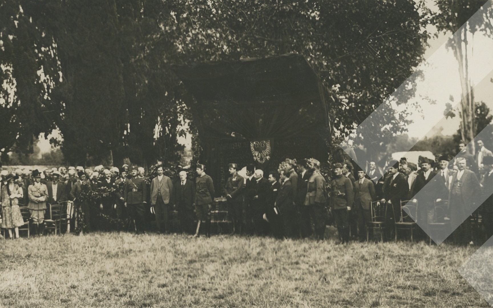 Kol Maca, Paria e Maleve në fushën e Namazgjasë gjatë betimit ndaj Kryetarit të Republikës, Ahmet Zogu, më 26 Qershor 1925, print në letër, 9 x 14 cm.