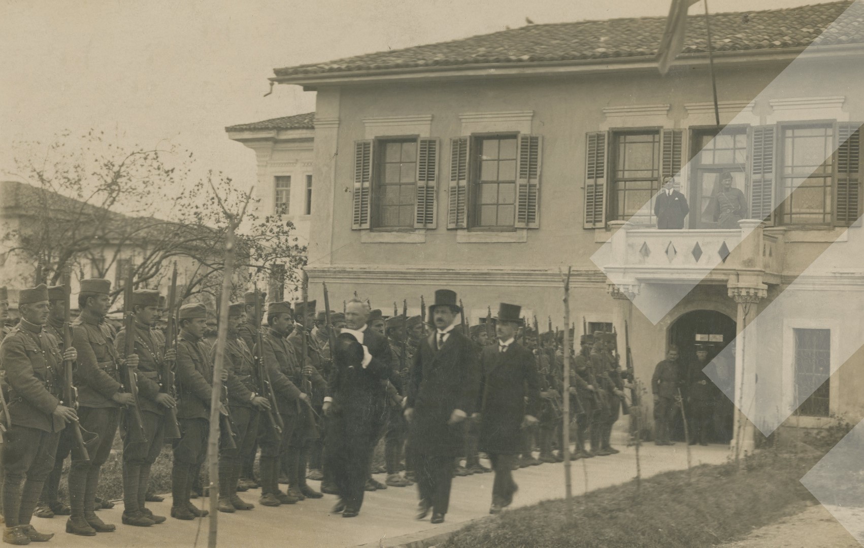 Kol Maca 1925 Një delegacion i huaj del nga pallati Presidencial në Tiranë print në letër, 9 x 14 cm.