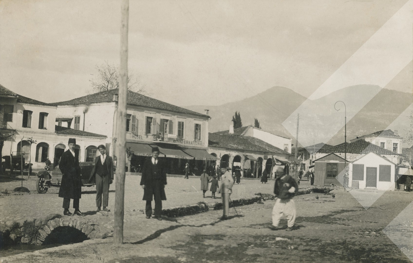 Kol Maca rreth 1920-1925 Tiranë, sheshi përpara Hotel "Internacionalit" print në letër, 9 x 14 cm.
