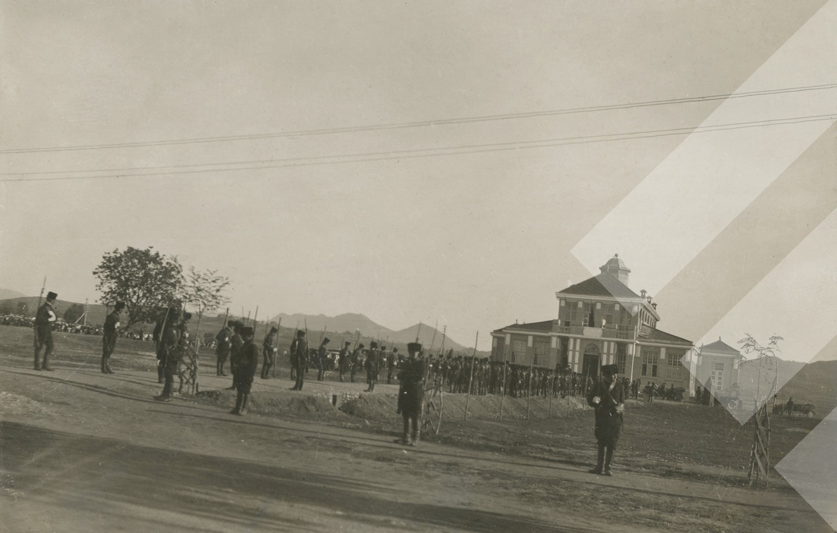 Kol Maca rreth 1930 Selia e Parlamentit në çelje të legjislaturës print në letër, 9 x 14 cm.