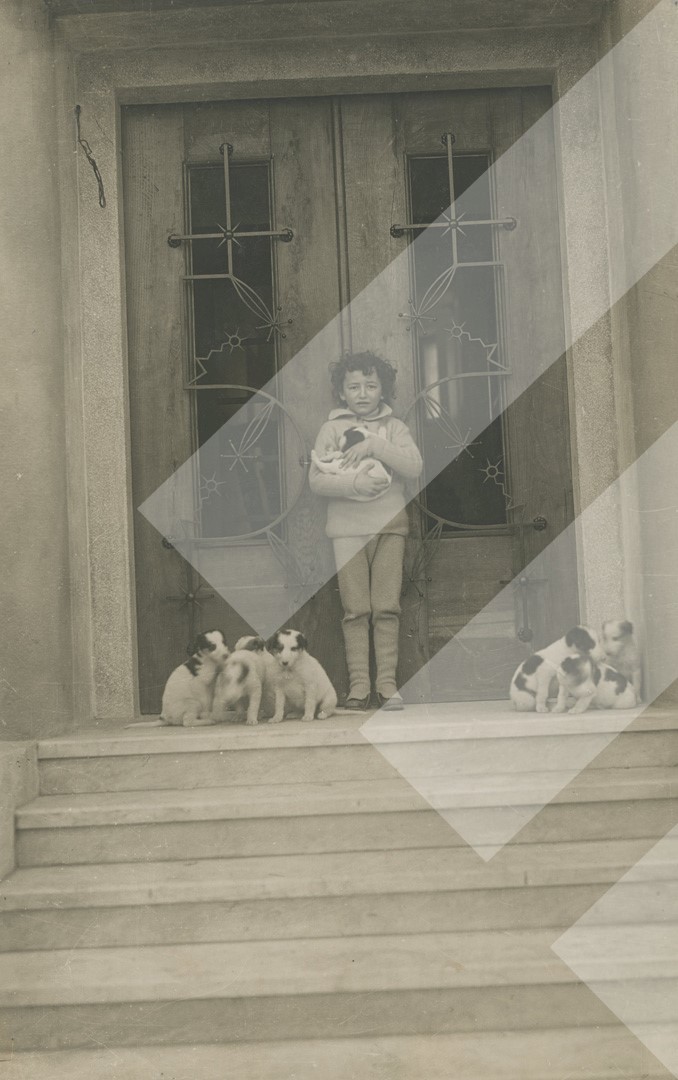 Kol Maca rreth 1930 Esad Murat Kryeziu, nipi i mbretit Zog, i njohur ndryshe si princ Tati i Kosovës përpara pallatit mbretëror print në letër, 9 x 14 cm.