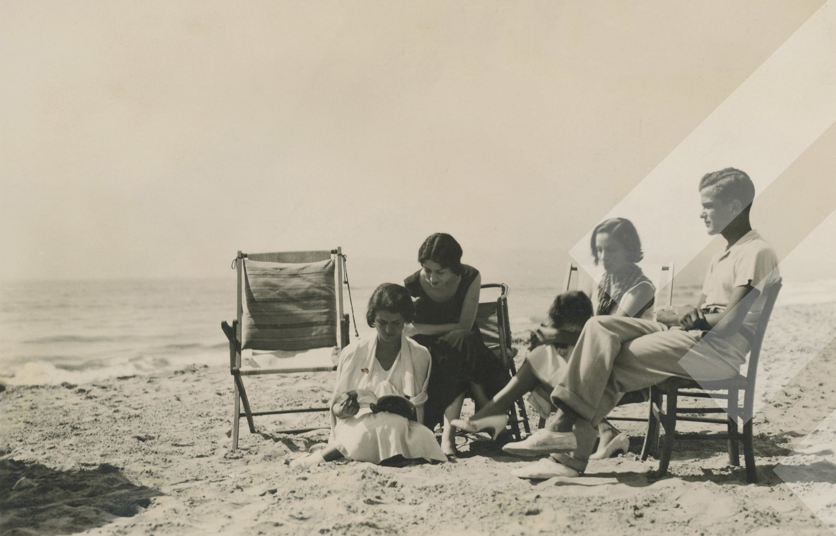 Kol Maca rreth 1935 Familje në plazh print në letër, 9 x 14 cm.