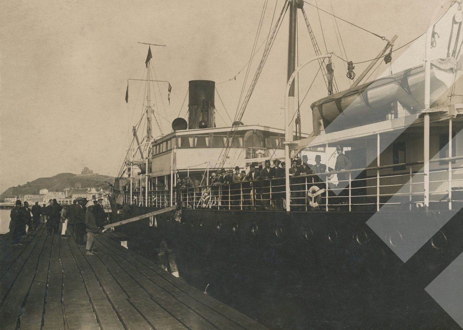 Fotografia Gurashi, rreth 1932, Anije pasagjerësh në portin e Durrësit, print në letër, 13 x 18 cm.