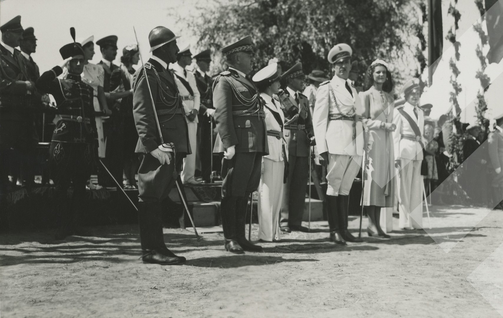 Jani Ristani, 1938, Çifti mbretëror bashkë me Princeshat gjatë një parade ushtarake në Tiranë, print në letër, 9 x 14 cm.