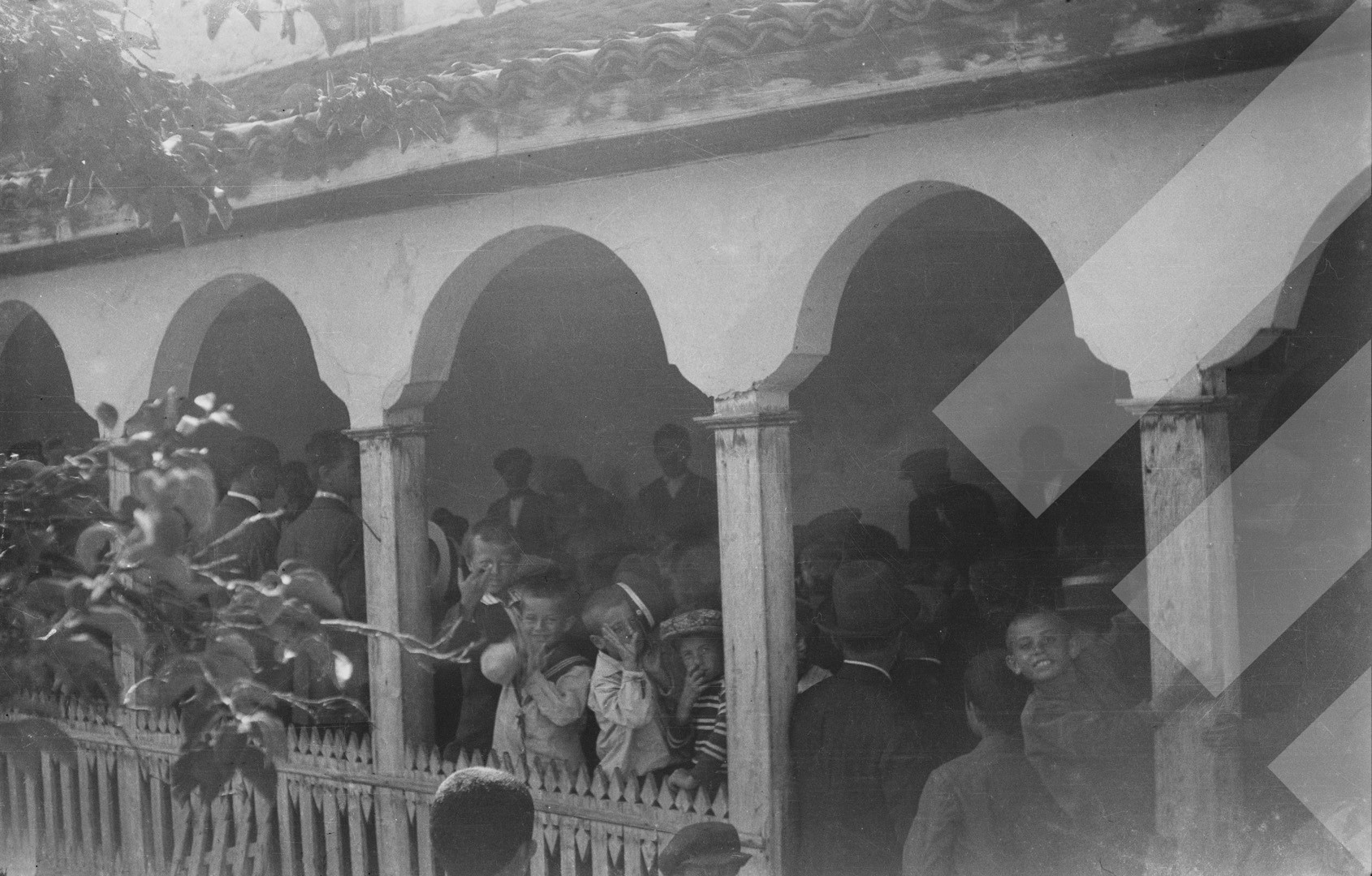 Kazazi A. Duhanxhiu, rreth 1935, Festë në një shtëpi elbasanase, negativ, 9 x 6 cm.