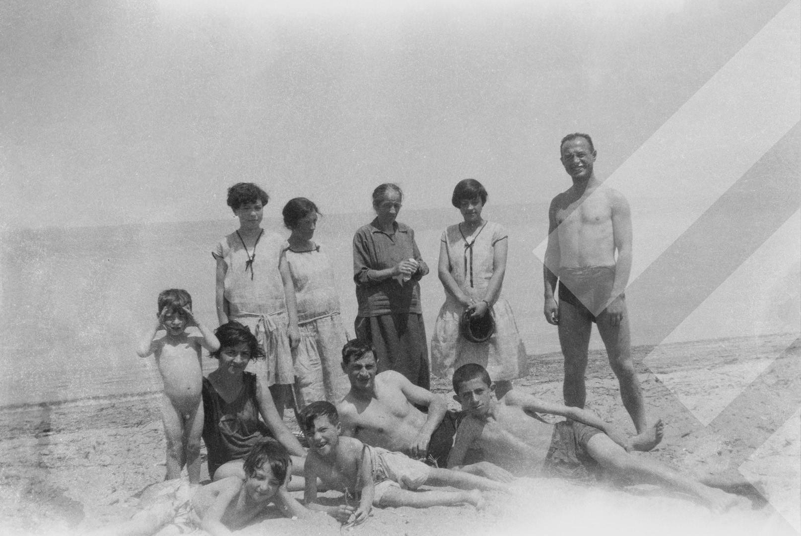 Kazazi A. Duhanxhiu, rreth 1935, Në plazh, negativ, 9 x 6 cm.