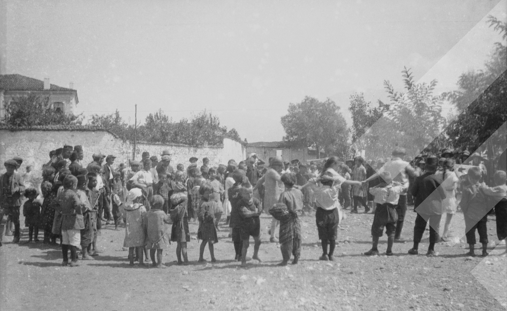 Kazazi A. Duhanxhiu, rreth 1935, Fëmijë duke festuar, Elbasan, negativ, 9 x 6 cm.