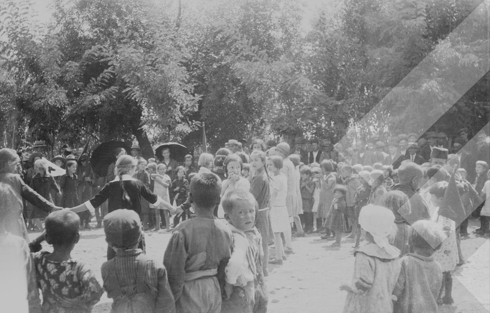 Kazazi A. Duhanxhiu, rreth 1935, Festë fëmijësh në Elbasan, negativ, 9 x 6 cm.