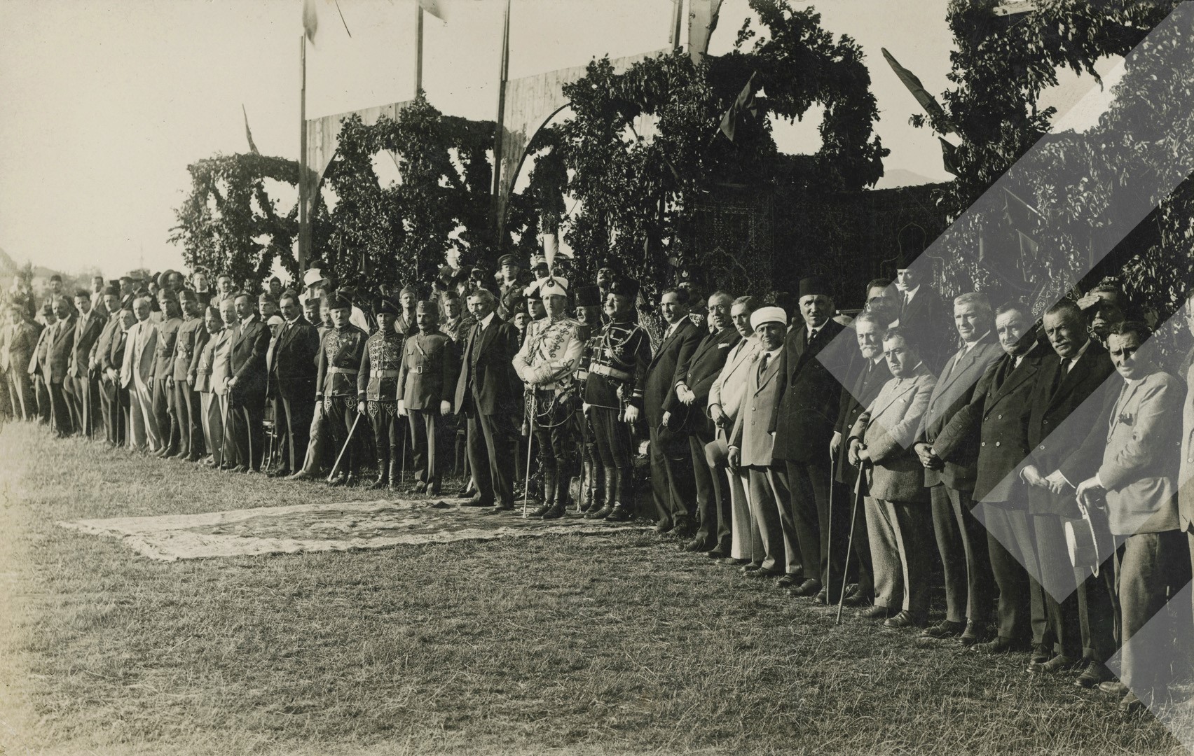Ymer Bali, rreth 1925-1927, Presidenti i Republikës mes autoriteteve në një ceremoni në Sheshin e Shallvareve, Tiranë, print në letër, 9 x 14 cm.