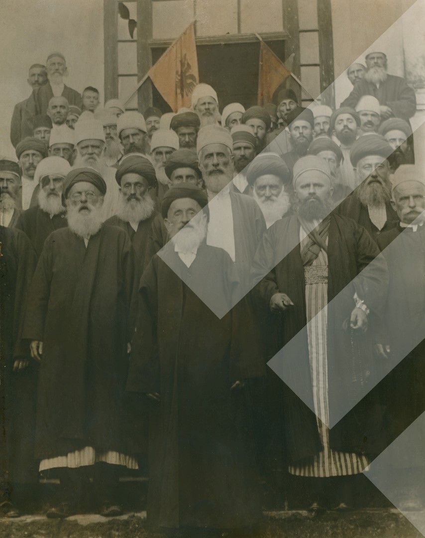 Ilia Xhimitiku, 1928, Kongresi i klerikëve sufi (në qendër Sheh Ahmet Pazari), Berat, print në letër, 29 x 37 cm.