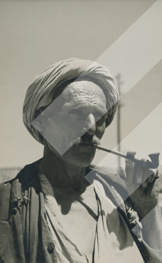 Dedë Jakova, rreth 1935-1940, Portret Malësori me çibuk, print në letër, 9 x 14 cm.