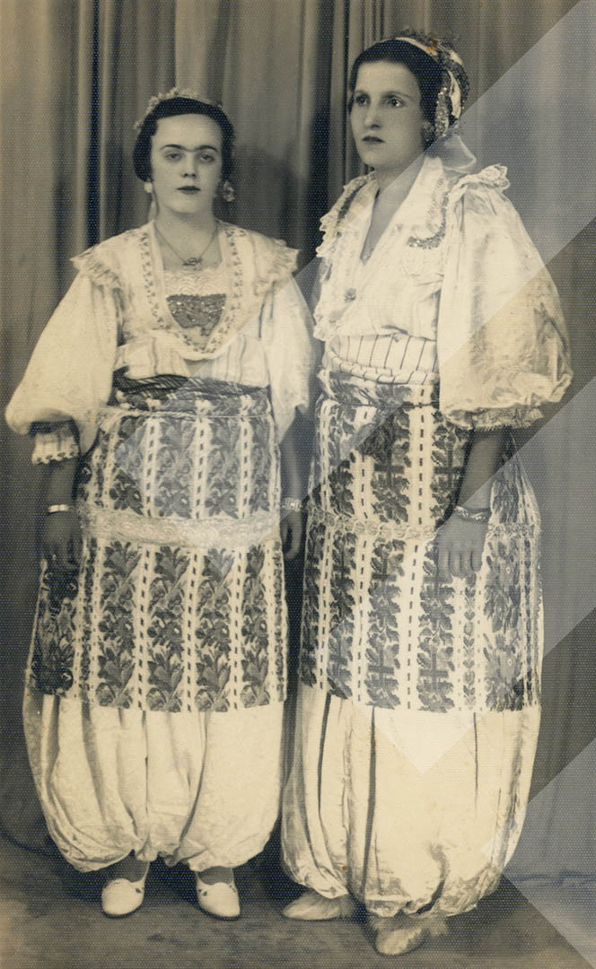 Studio Kurti, 1942, Gra në pozë me kostumin e katolikeve të Prizrenit, Tiranë, print në letër, 9 x 14 cm.