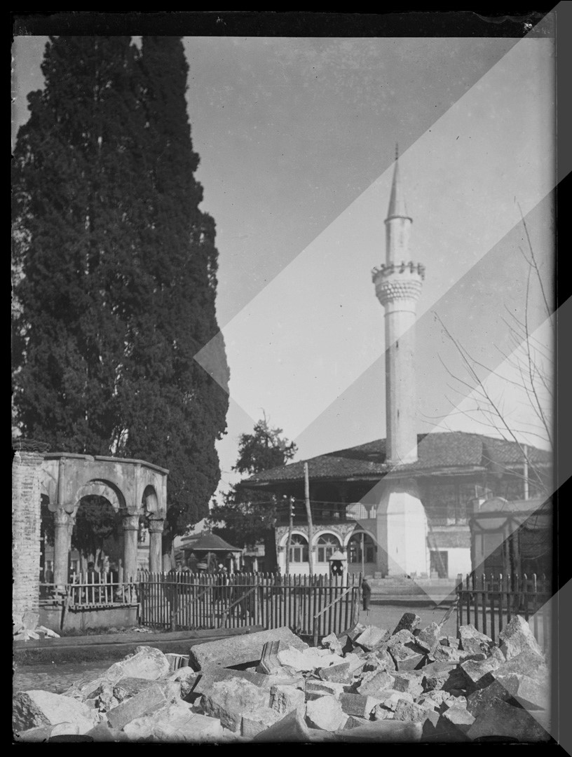 Hans Nechvatal, rreth 1929-1930, Varri i Kapllan Pashës dhe xhamia e vjetër e Tiranës, pllakë xhami, 9 x 12 cm.