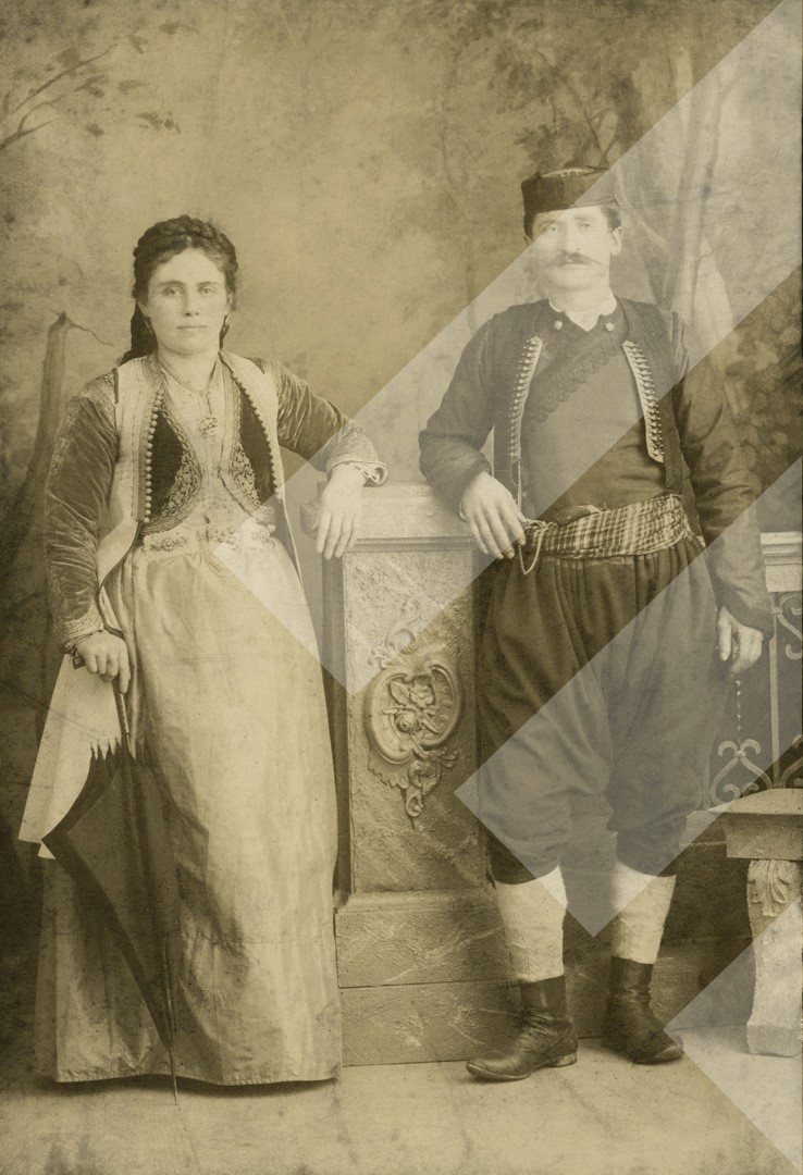Kol Idromeno, rreth 1900, Bashkëshortë në studio, print në letër, 10 x 14 cm.