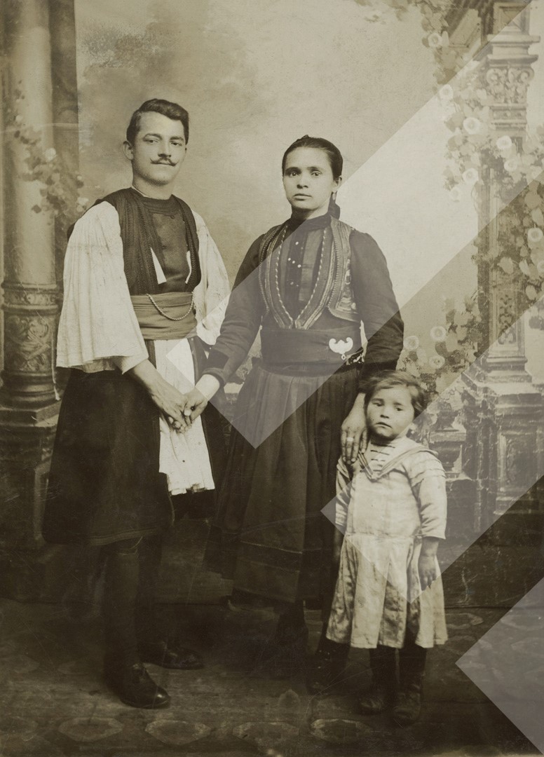 Kristo Sulidhi rreth 1895-1900 Familje në studio print në letër, 12 x 16 cm.