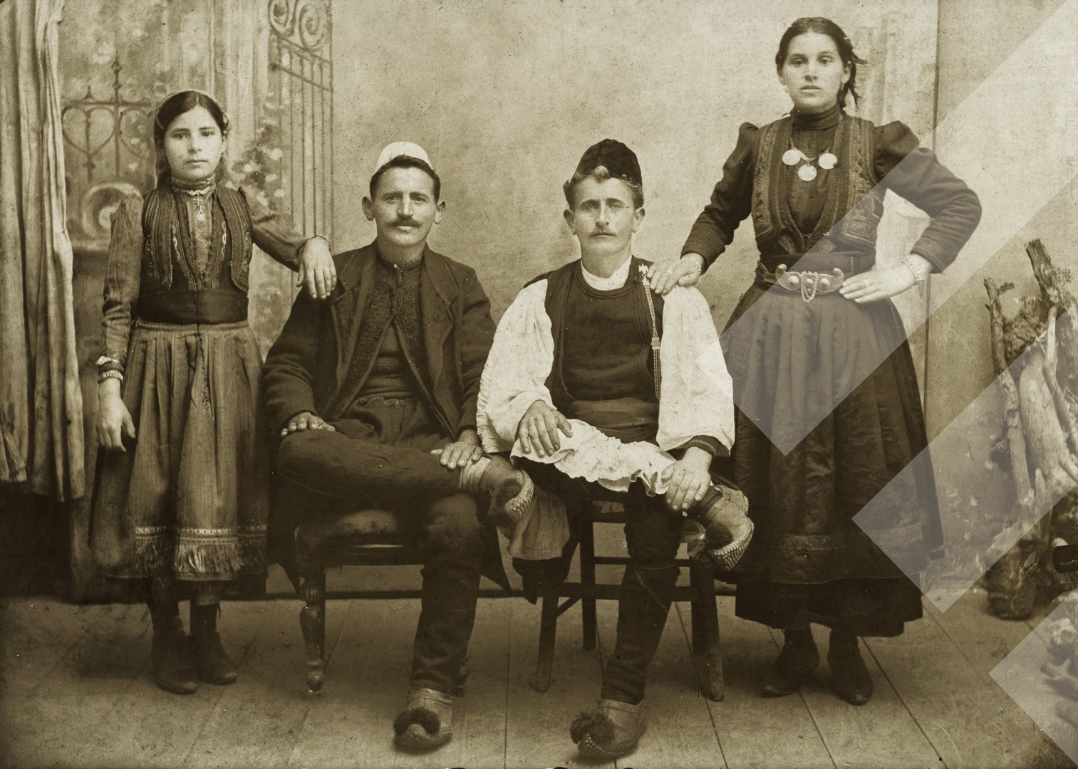 Kristo Sulidhi rreth 1900-1905 Familjarë në studio print në letër, 12 x 16 cm.