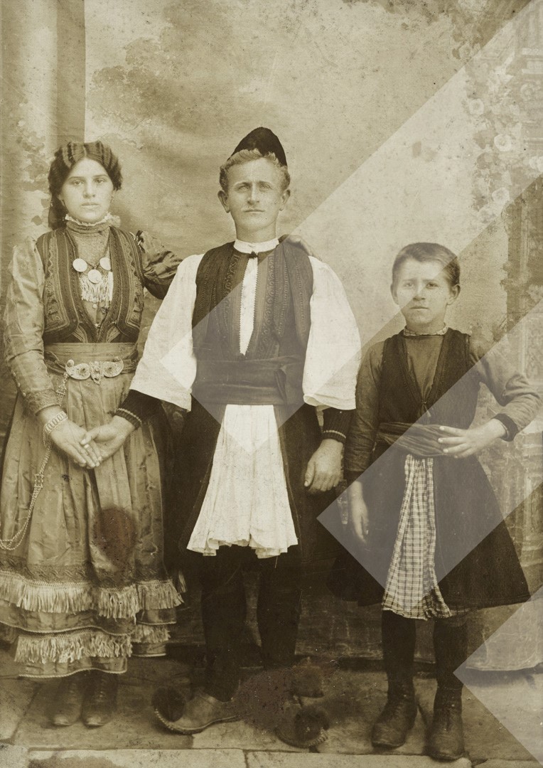 Kristo Sulidhi rreth 1900-1905 Familje në studio print në letër, 11 x 15 cm.