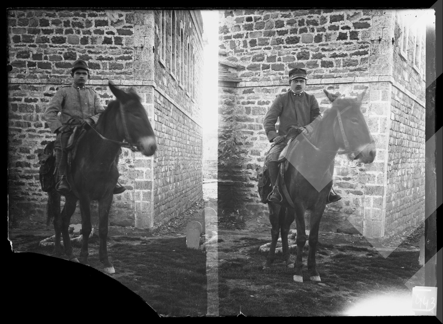 Dhimitër Vangjeli , "", rreth 1917-1918 , , oficer italian mbi mushkë, Ersekë, , pllakë xhami , 12 x 16 cm