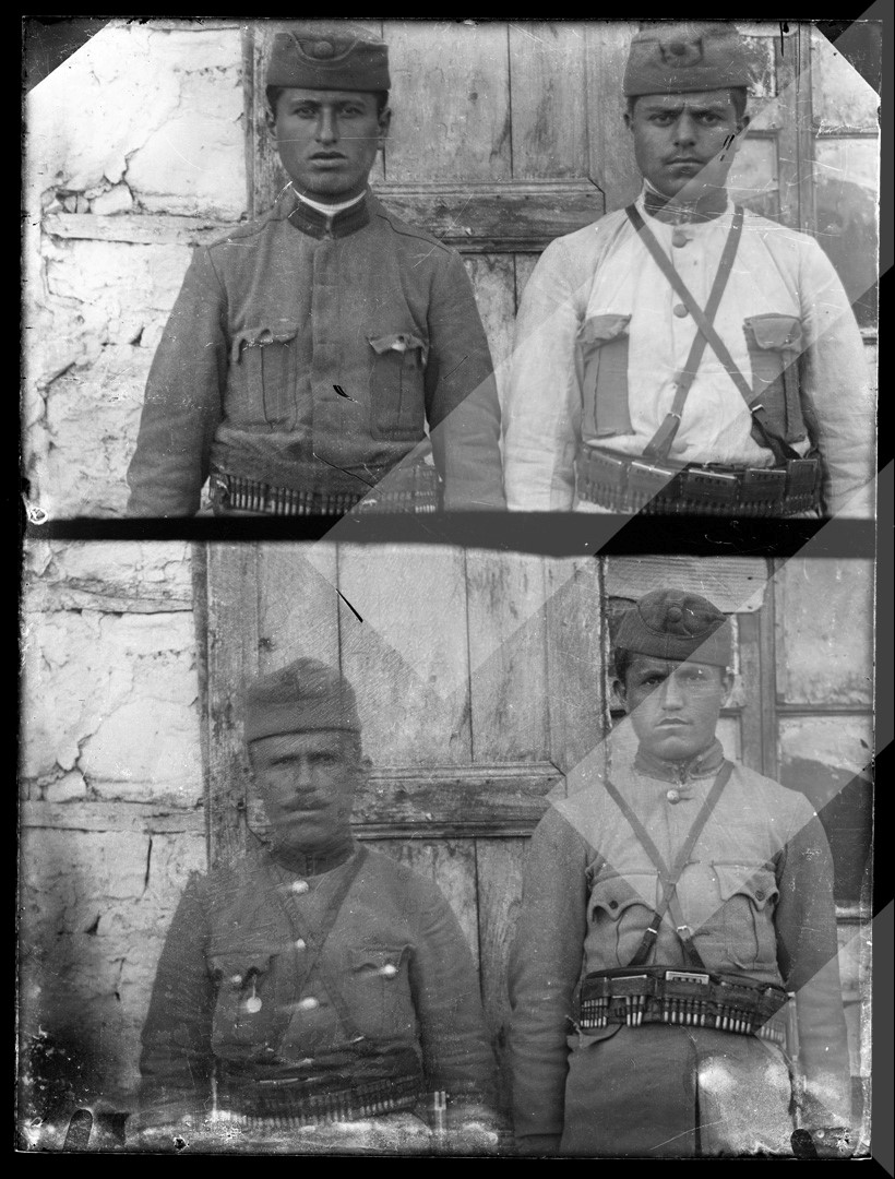 Dhimitër Vangjeli , "", rreth 1920-1922 , , ushtarë shqiptarë, Kolonjë, , pllakë xhami , 9 x 12 cm