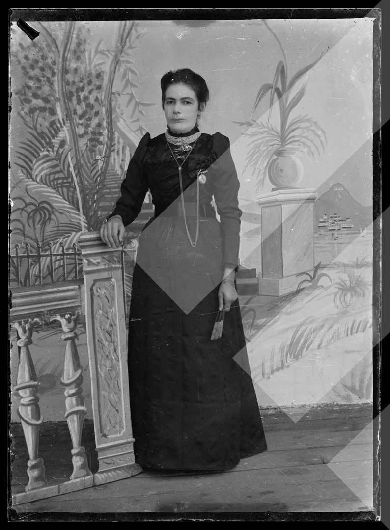 Dhimitër Vangjeli , "", rreth 1920-1925 , , zonjë kolonjare me erashkë, Ersekë, , pllakë xhami , 12 x 16 cm