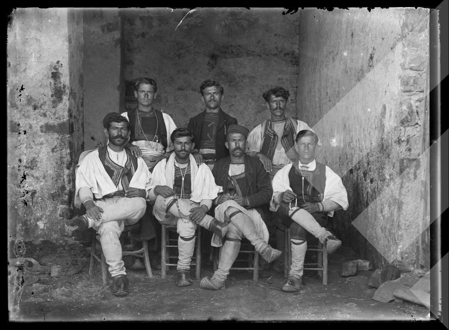 Dhimitër Vangjeli , "", rreth 1920-1925 , , grup kolonjarësh, Ersekë, , pllakë xhami , 13 x 18 cm