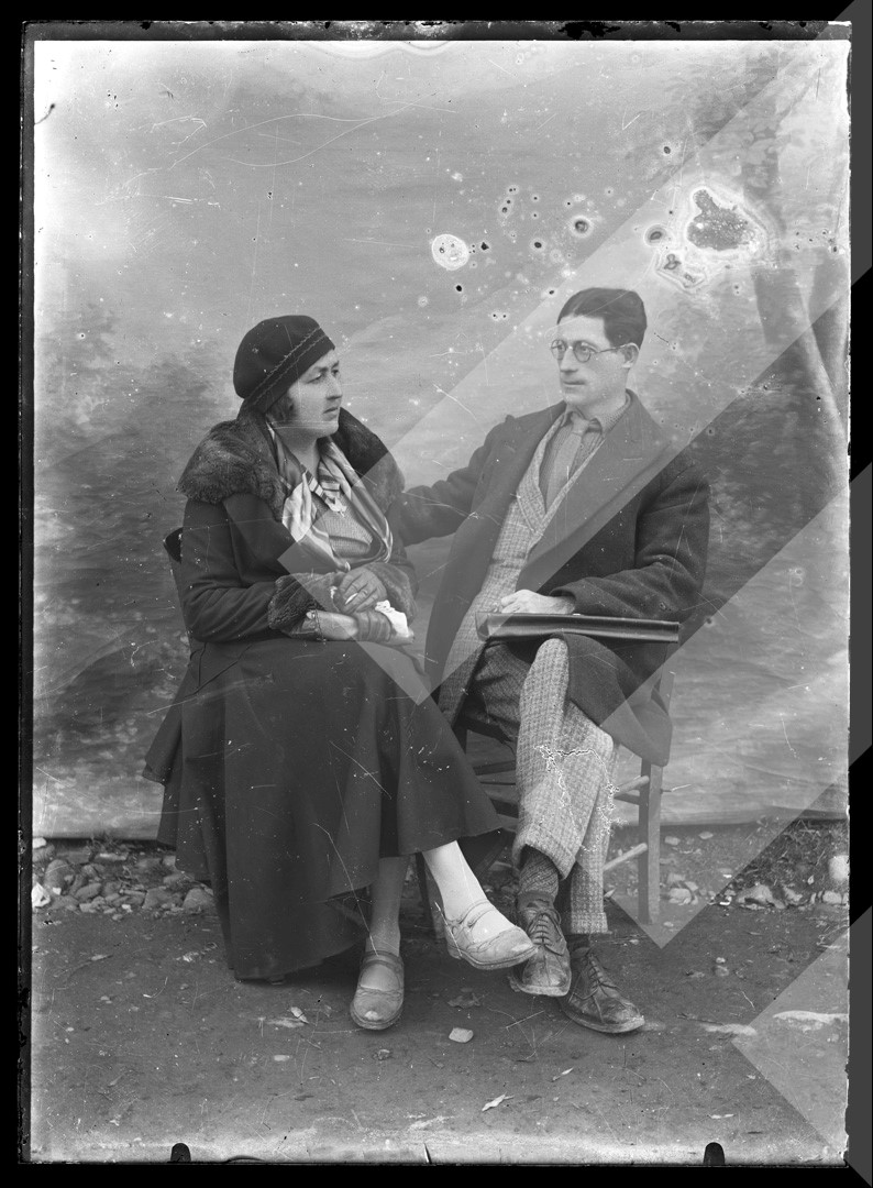 Dhimitër Vangjeli , "", rreth 1925-1930 , , bashkëshortë në pozë, Kolonjë, , pllakë xhami , 13 x 18 cm