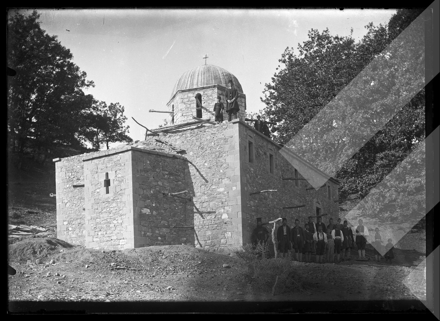 Dhimitër Vangjeli , "", rreth 1910 , , ngrehina e sapo përfunduar e një kishe, Ersekë, , pllakë xhami , 13 x 18 cm