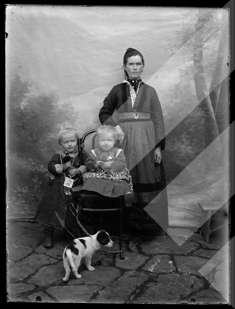 Dhimitër Vangjeli , "", rreth 1915-1920 , , nëna me bijat, , pllakë xhami , 12 x 16 cm