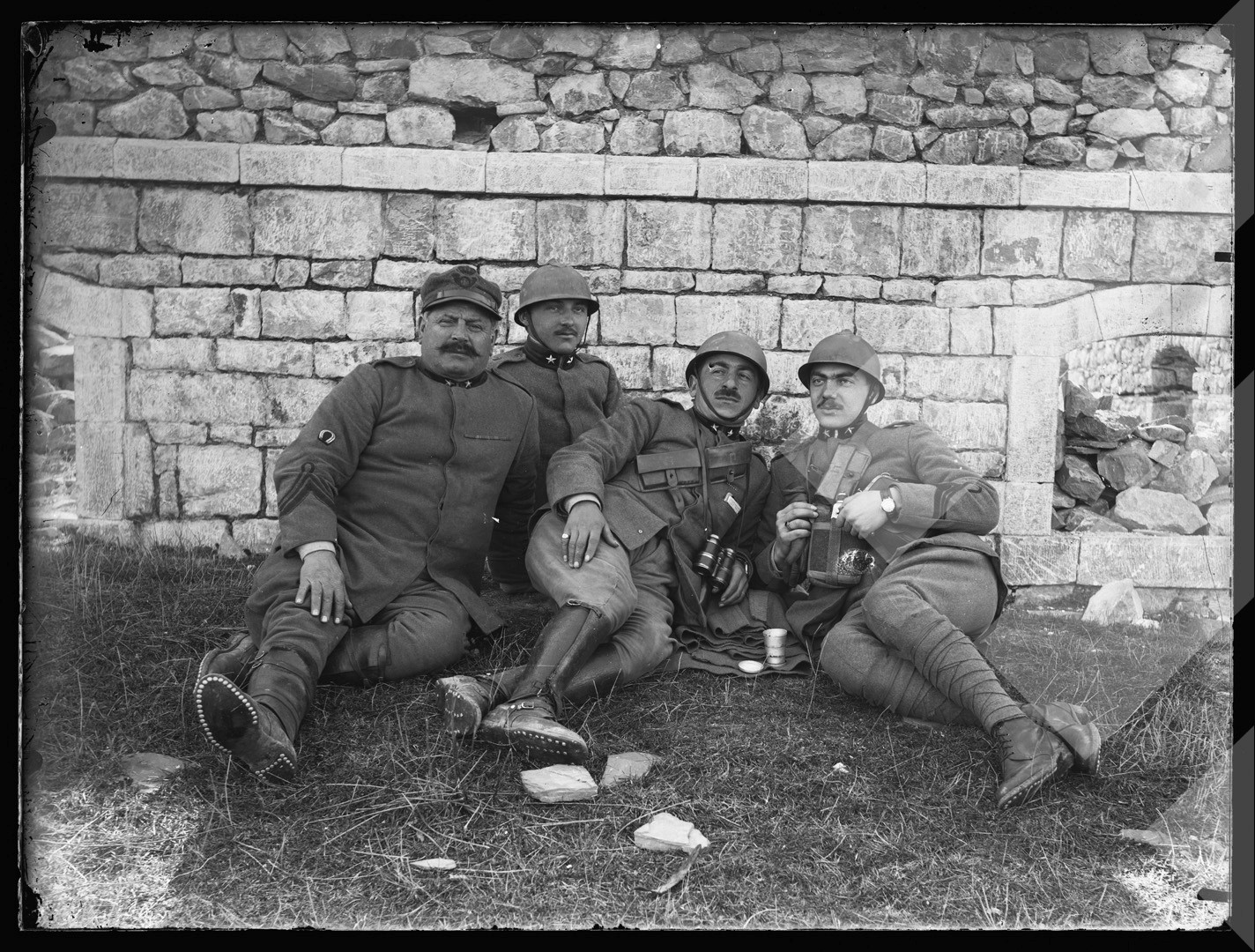 Dhimitër Vangjeli 1916-1918 grup oficerësh italianë të Luftës I Botërore pllakë xhami, 13 x 18 cm.