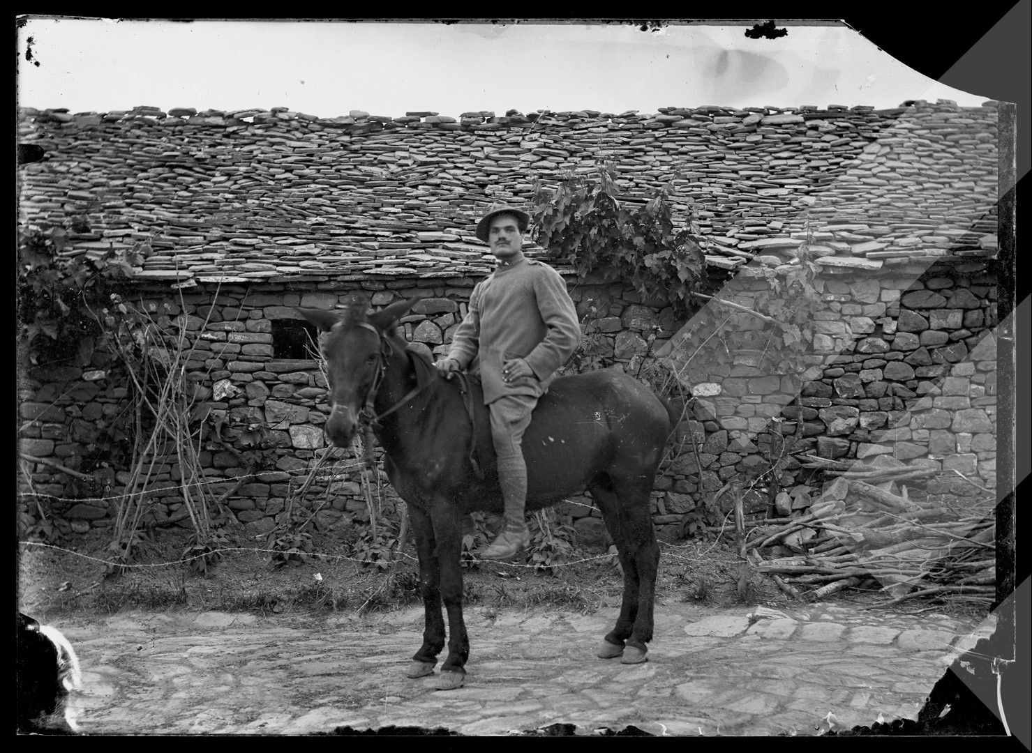 Dhimitër Vangjeli 1917-1918 oficer italian i Luftës I Botërore mbi mushkë pllakë xhami, 13 x 18 cm.