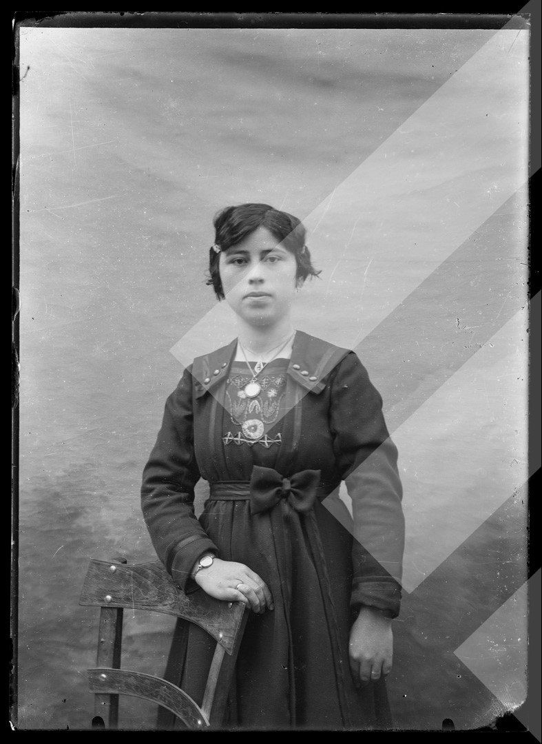 Dhimitër Vangjeli 1918-1920 grua nga Erseka pllakë xhami, 13 x 18 cm.