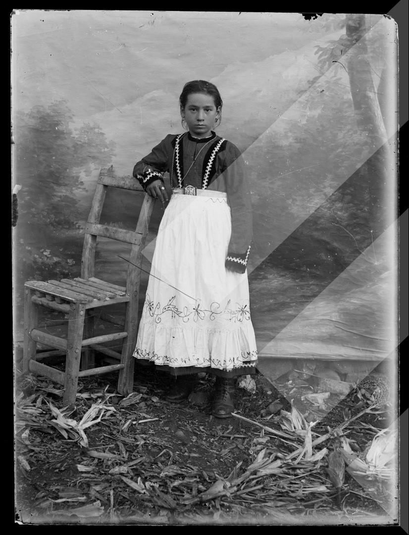 Dhimitër Vangjeli 1918-1920 vajzë me veshje të zonës pllakë xhami, 12 x 16 cm.